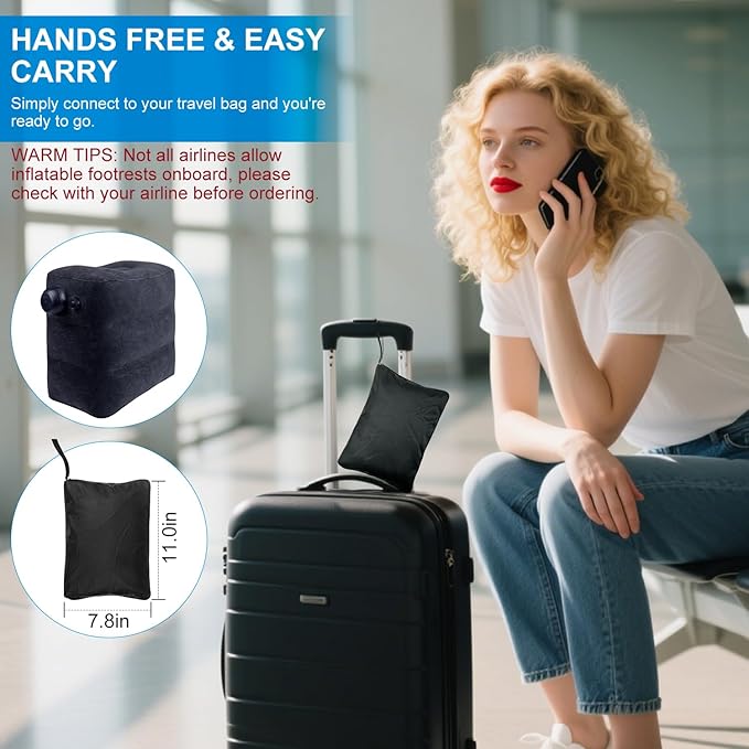 - 【ELEVATE YOUR COMFORT】 Our inflatable travel foot pillow elevates your legs, providing more comfort and reducing the risk of leg swelling and stiffness. You'll arrive at your destination feeling refreshed and ready to go.