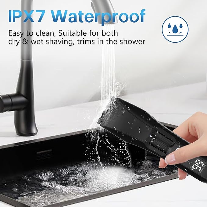 - IPX7 Waterproof For Wet & Dry Shaving: This men's electric beard trimmer built for men looking to take their beard maintenance routine to the next level, featuring an IPX7 waterproof design makes it ideal for wet/dry use, enabling you to trim in the shower and easily clean it under running water for a quick, hygienic experience, effectively handling all hair types, from fine to thick, achieve your desired look with this versatile beard trimmer, meet your all grooming needs