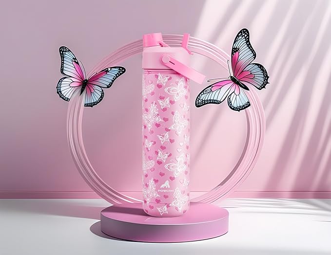 26 oz Insulated Water Bottle with 2-in-1 Straw and Spout Lid, Keep Cold 24H, Leak-Proof, Fits in Car Cup Holder, Stainless Steel Water Bottle for Sports, Travel, and School (Fluttering Amour)