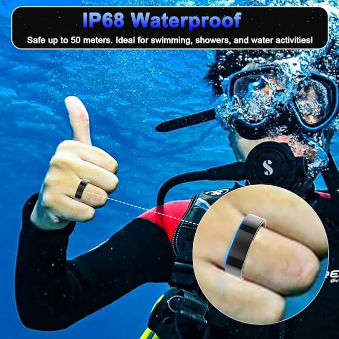 - 【IP68 Waterproof Design for Everyday Use】 Experience unmatched durability with this smart ring’s IP68 waterproof technology, designed to keep up with your active lifestyle. Whether you're sweating it out during a workout, exploring the outdoors, or caught in the rain, this ring stays reliable and fully functional. From running and walking to everyday wear, it’s built to withstand water and dust, giving you peace of mind and confidence to take on any challenge—rain or shine.