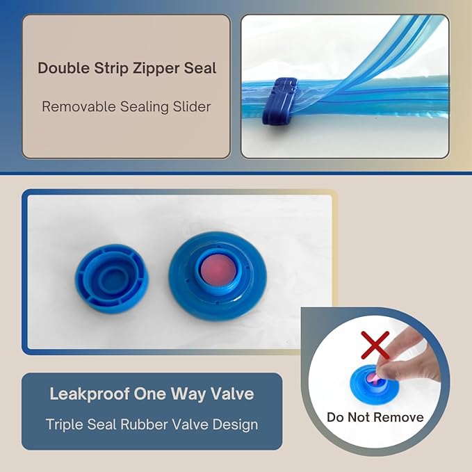 - Easy to Use: Simplicity is key with our vacuum bags. Just place your items inside, seal with the included reinforced zip sliders, and pump out the air using either the provided compact ePump or your household vacuum cleaner