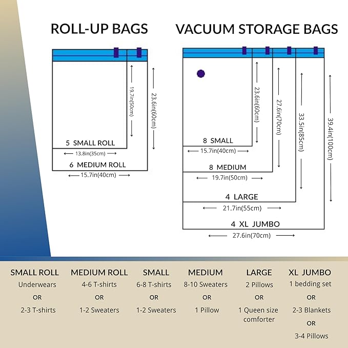 - Space Saving Solution: Our space saver vacuum storage bags are perfect for compressing bulky items like comforter, pillow, sweater, bedding and clothing for organization and storage