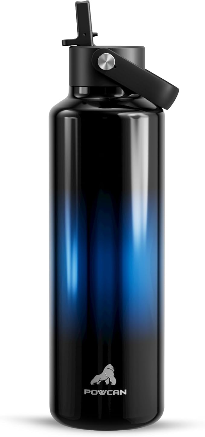 24 oz Water Bottle with Handle for Men: Spill Proof Lid with Straw, Flex Cap, Cold for 24 Hrs, Hot for 10 hrs, Vacuum Stainless Steel Thermos for Walking, Hiking, Travel, Sport, Gym (Twilight Night)