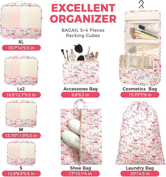 BAGAIL 9 Set Packing Cubes Luggage Packing Organizers for Travel Accessories