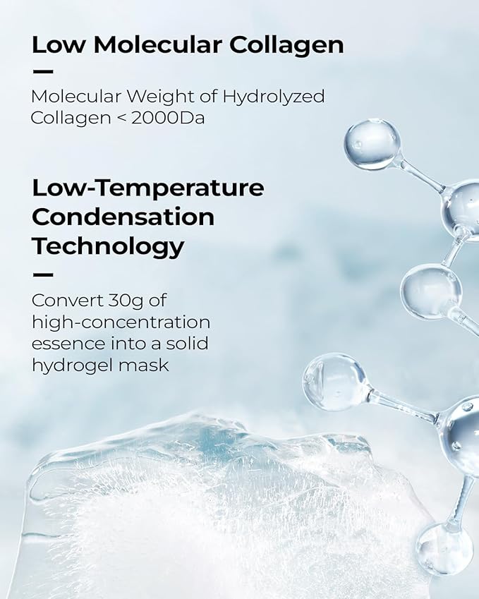 - Real Collagen Mask: Using the low-temperature condensation technology, 30g of high-concentration collagen essence liquid is solidified into a water gel facial mask. It can penetrate the skin, releasing over 90% of the essence. Compared to ordinary masks, it provides better moisturizing effects