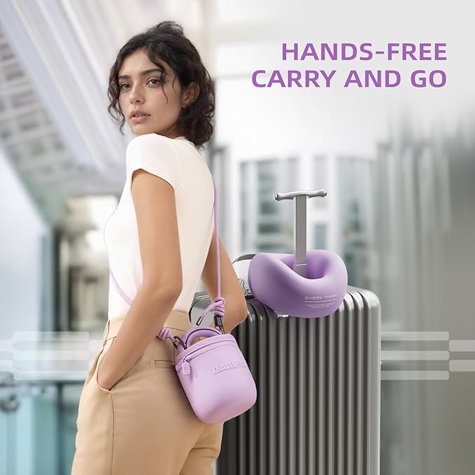 Travel Pillow - Memory Foam Neck Pillow Airplane, Neck Travel Airplane Pillow for Long Flight, 360º Support, Machine Washable (Purple)