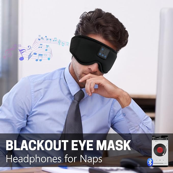 - ✅ 100% Light Blocking & Adjustable Strap: The sleep mask with Bluetooth headphones provides full blackout to help you fall asleep faster. With an adjustable elastic strap, it fits all head sizes comfortably without shifting—perfect for uninterrupted rest.