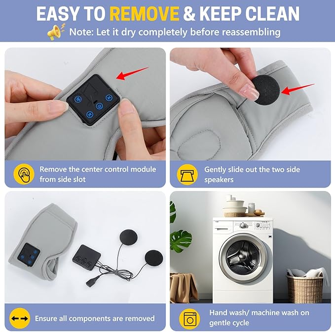 - ✅ Removable Module & Washable Mask: The bluetooth module is detachable, allowing you to wash the eye mask easily for hygiene and long-term use. Note: If not used for 3–6 months, please recharge the battery once to maintain optimal performance. A thoughtful gift for frequent travelers, nappers, and light sleepers.