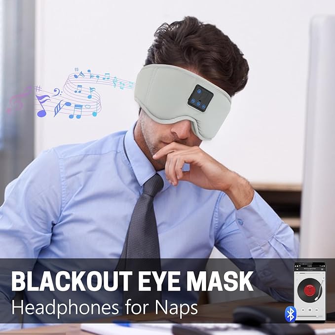 - ✅ 100% Light Blocking & Adjustable Strap: The sleep mask with Bluetooth headphones provides full blackout to help you fall asleep faster. With an adjustable elastic strap, it fits all head sizes comfortably without shifting—perfect for uninterrupted rest.
