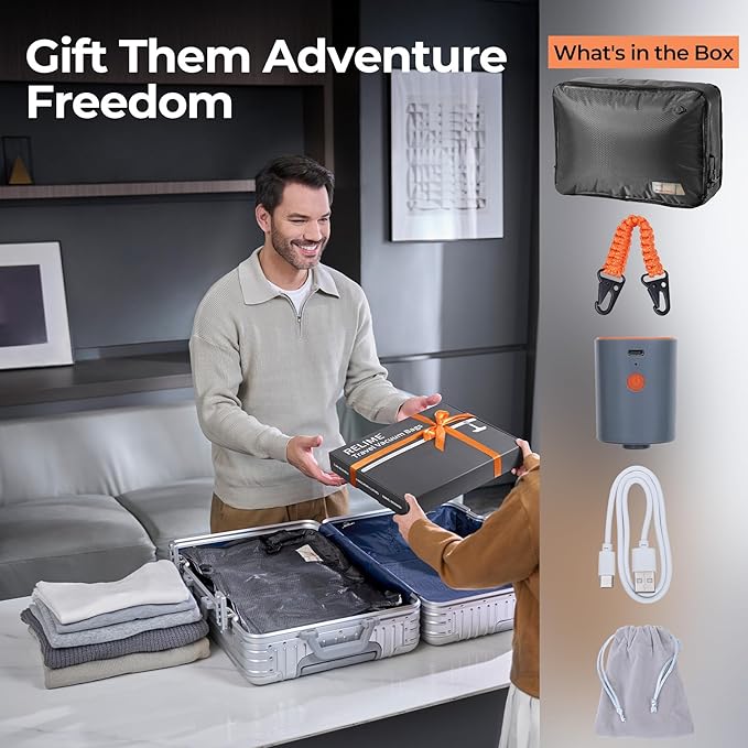- 【Upgraded Vacuum Kit】Upgraded vacuum system ensure 5KPa suction (42% stronger vs. market 3.5KPa vacuum pump) slashes bulk by 50% at least. 2400mAh battery fuels 40 full compressions by one charge. Highly portable and convenient for travel storage.