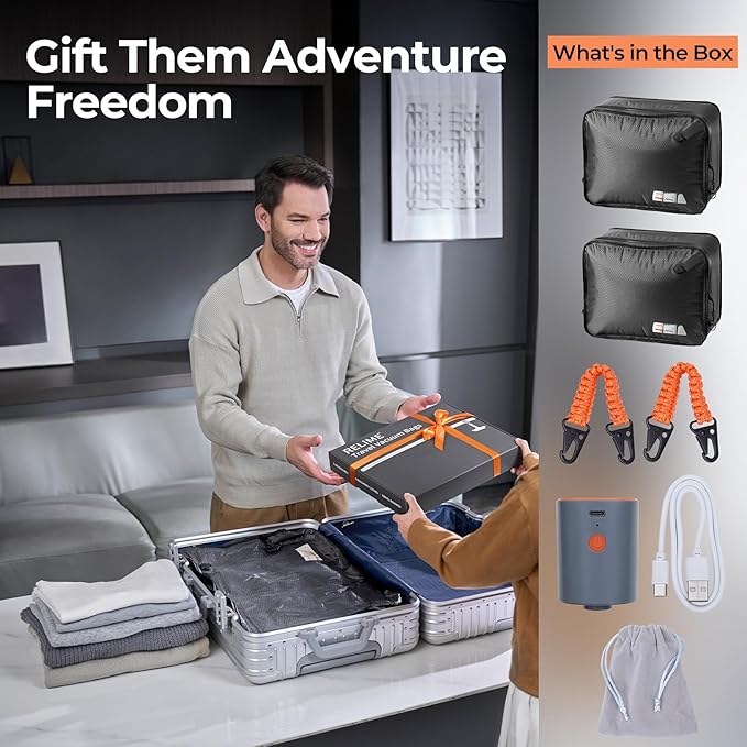 - 【Upgraded Vacuum Kit】Upgraded vacuum system ensure 5KPa suction (42% stronger vs. market 3.5KPa vacuum pump) slashes bulk by 50% at least. 2400mAh battery fuels 40 full compressions by one charge. Highly portable and convenient for travel storage.