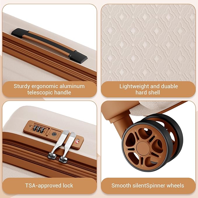 - 【Smooth & Quiet Rolling 】: Equipped with ultra-quiet 360° spinner wheels, the suitcase glides seamlessly across various surfaces for a hassle-free travel experience.