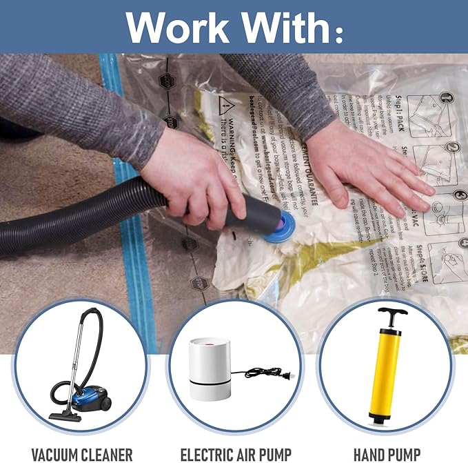- [Space Saving] Vacuum storage bags help save 30%-80% of storage space, ideal for luggage, closets, basements, attics, and garages. They fit for storing down comforters, blankets, pillows, or clothes from different seasons.