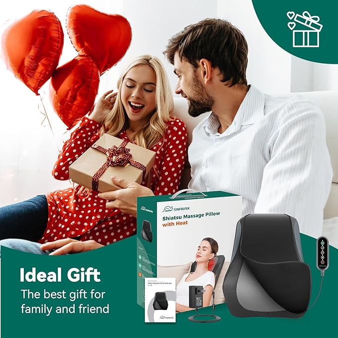 Snailax Back Massager for Back Pain Deep Tissue, Shiatsu Neck Back Massager with Heat, 3D Kneading Chair Massage Pillow, Neck Shoulder Massage, Gifts for Mom, Dad, Women