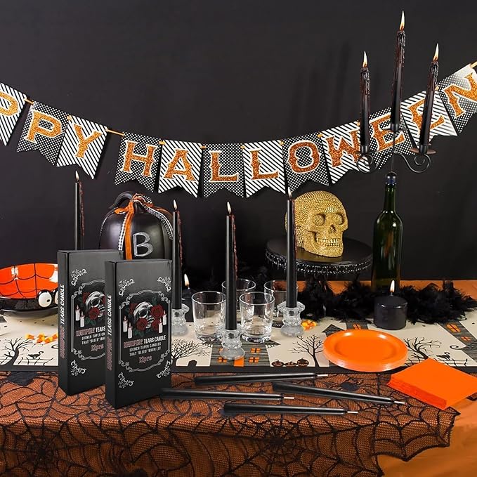 - [Enchanting Aesthetic] Elevate the atmosphere of any event with our striking 10-inch black vampire bleeding taper candles. With their deep, rich black color and unique dripping wax effect, these candles create a mesmerizing visual that captures attention. Perfect for Halloween parties, they evoke feelings of mystery and intrigue, while also serving as chic decor for more formal settings. The dramatic appearance makes them ideal accents for themed events, making your gatherings memorable and captivating.