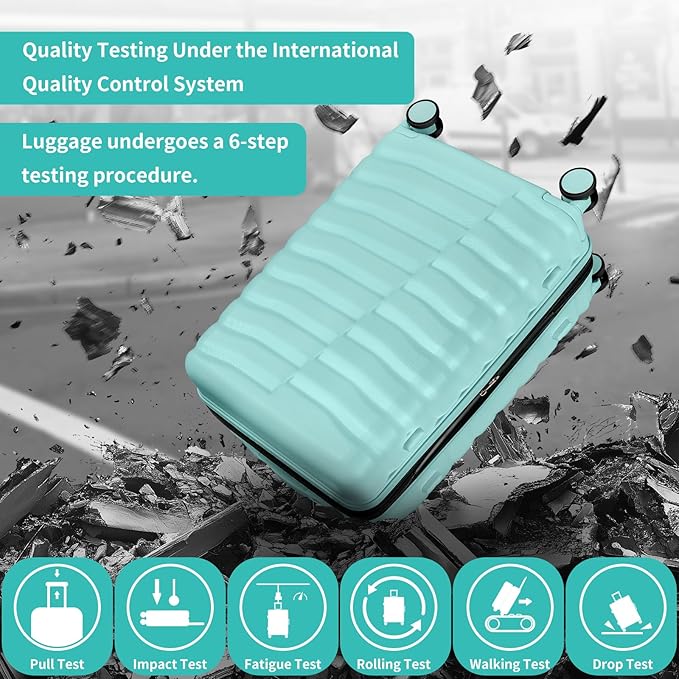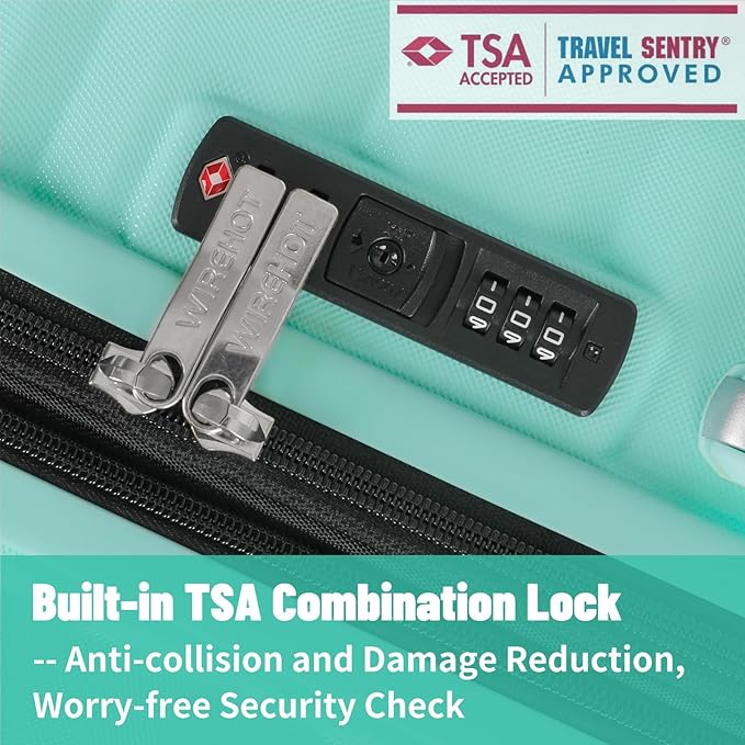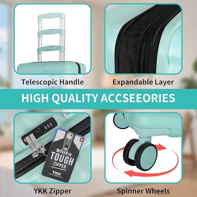 5-Piece Luggage Set, Lightweight ABS+PC Hard Shell Suitcase with YKK Zipper & TSA Lock for Family, MInt Green, 14in/18in/20in/24in/28in