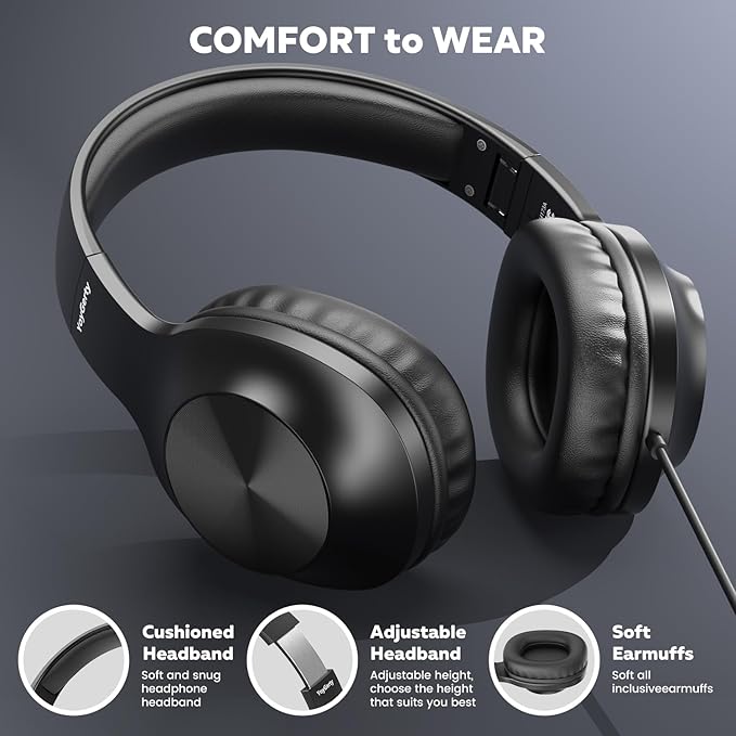 - 【Premium Noise Isolation】 Enjoy enhanced listening experiences with our wired headphones that feature soft, breathable ear cushions for effective noise isolation. Whether you're working, exercising, or relaxing, these comfort headphones will help create a peaceful environment anytime, anywhere.