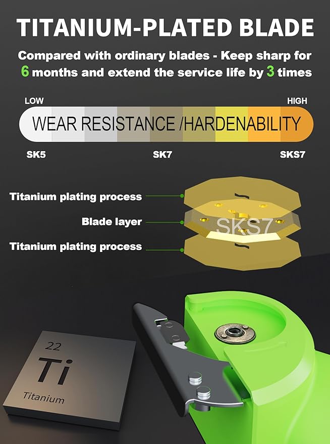 - UNMATCHED CUTTING PERFORMANCE: The 4V electric cardboard cutter are equipped with a premium titanium alloy blade, 3x more wear-resistant than standard blades, ensuring long-lasting performance without frequent sharpening. Cardboard cutter with high-speed 300RPM motor, cutting power is boosted by 20% for a smoother and more efficient experience. Whether you’re opening boxes or crafting, enjoy professional-grade cutting with ease