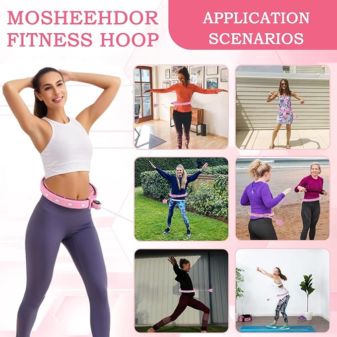 - đ [Perfectly Smooth Rotation] Say goodbye to annoying pauses! The high-performance ball bearing system ensures smooth rotation even during high-intensity training, allowing you to enjoy a happy fitness time.This silent smart weighted hula can give you a seductive figure.MOSHEEHDOR silent smart weighted hoop is suitable for luxury home gym,apartment friendly workout.
