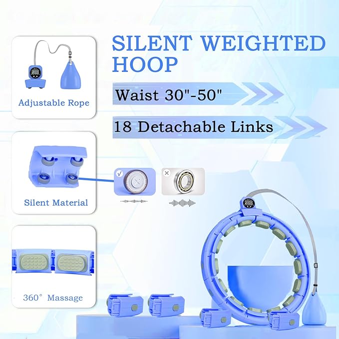 - đĄ [Smart Fitness Tracker] The silent smart weighted hoops for women and men more than just counting! Our advanced digital counter tracks: â Exercise time (set goals with the built-in timer); ⥠Accurate rotation counts; ⢠Personalized calorie burn predictions,Understand exactly how intense your exercise is!