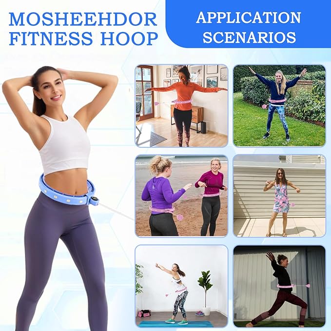 - đ [Perfectly Smooth Rotation] Say goodbye to annoying pauses! The high-performance ball bearing system ensures smooth rotation even during high-intensity training, allowing you to enjoy a happy fitness time.This silent smart weighted hula can give you a seductive figure.MOSHEEHDOR silent smart weighted hoop is suitable for luxury home gym,apartment friendly workout.