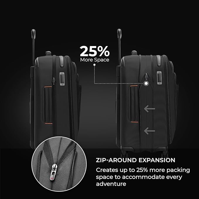 Briggs & Riley Domestic 22" Carry On Expandable Spinner - Luggage for Travel, Suitcases with Wheels, Softside Rolling Bag for Men & Women - ZDX Collection, Black