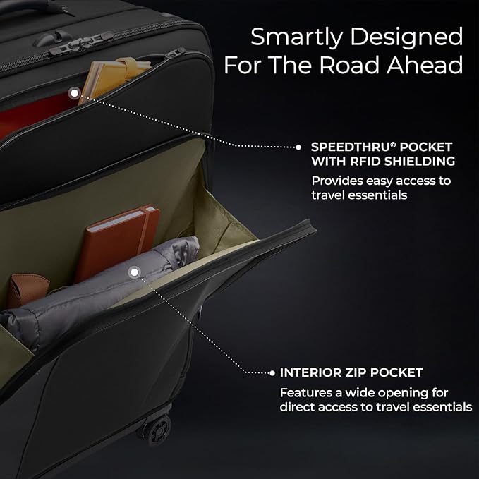 - 360 SPINNER WHEELS - Move smoothly in any direction with four shock-absorbing spinner wheels that provide a quiet, fluid glide through airports, train stations, and city streets