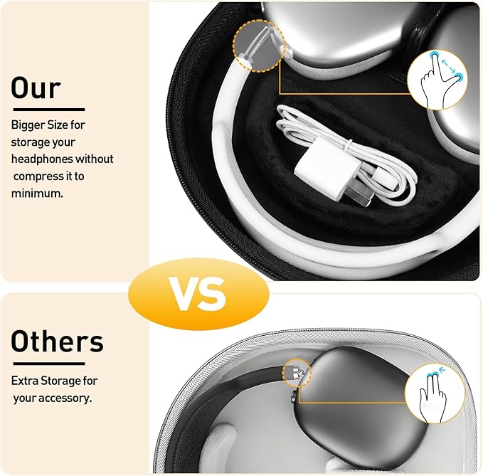 - 【Hard Case for Full Protection】Protection case for AirPods Max is made of durable EVA hard case, it is strong enough to protect your headphone from impact of bump and drop.