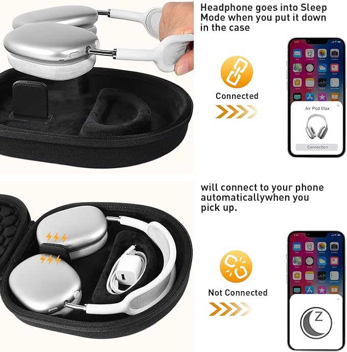 - 【Support Auto Sleeping Mode】Case for AirPods Max support sleeping mode, when you put the AirPods Max in the case and it will go into sleeping mode automatically to save power.