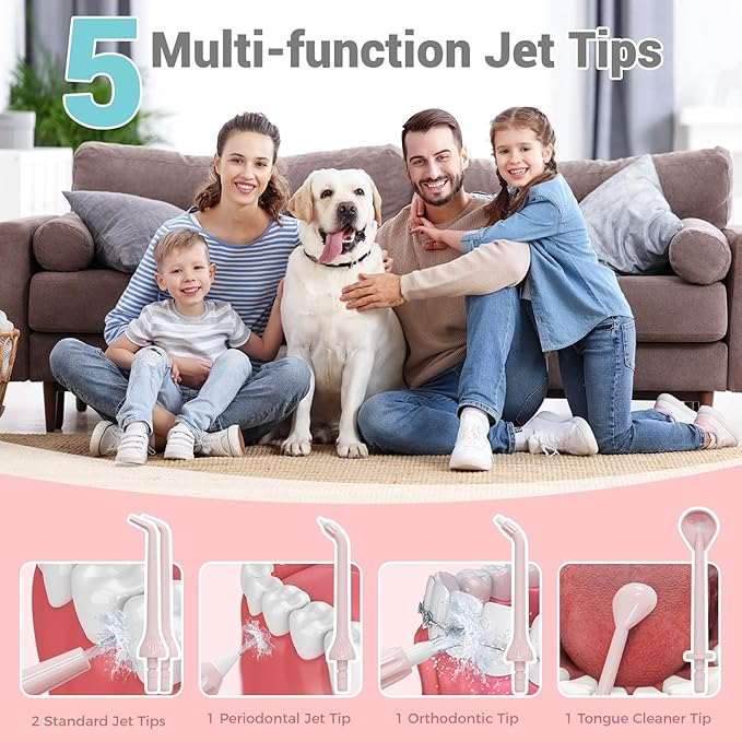 - 【Service Support and Packaging】Provide 24-hour technical support and 2-year after-sales service to ensure user satisfaction, the package includes: 1 electric flosser; 5 replacement nozzles; 1 travel bag; 1 user manual; 1 USB charging cable (without adapter).NOTE:Packaging may vary (new or old), but the contents are exactly the same