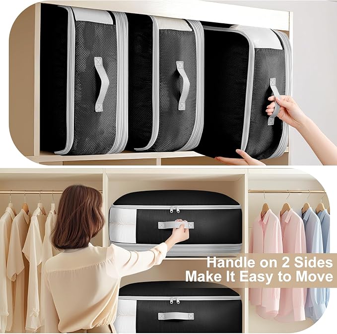 - [4-Layer Compression Bags] Our 130L ultra space-saving self-compression organizer features a unique 4-layer compression system, offering not only more storage capacity than standard 2-layer designs but also greater flexibility. It’s perfect for blanket storage, comforter storage, pillow storage, down coat storage and bulky items, allowing you to optimize every inch of space in your closets or underbed storage containers