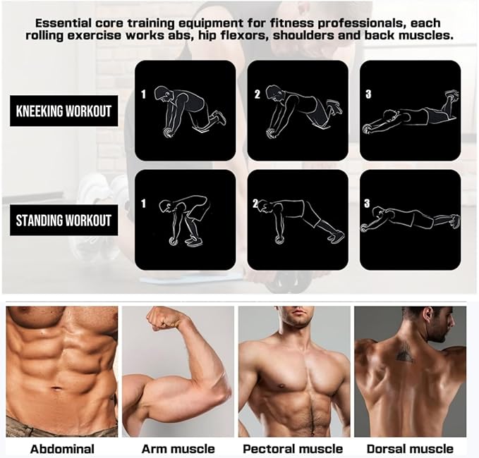 - Enhanced Stability and Control: Featuring 3.6 inch wide ab roller wheel with rubberized treads and non-slip handles, our ab roller ensures better stability and control, provides safer and more effective workout experience.The knee pad is made from high density EVA foam to provide maximum protection and comfort for your knees.