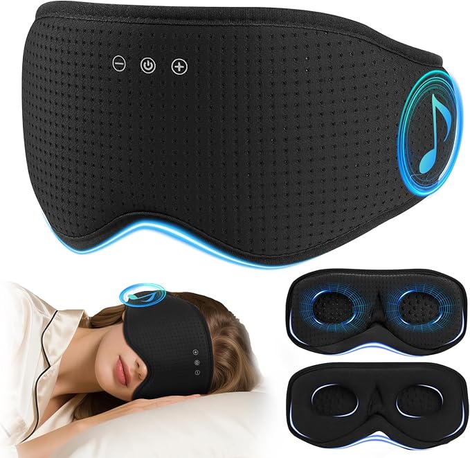 Sleep Mask with Bluetooth 5.4 Headphones, Removable 3D Eye Cups, Timing Sleeping Headphones for Side Sleepers, Wireless Music Eye Mask Speakers for Men, Women, Tech Gifts, Black