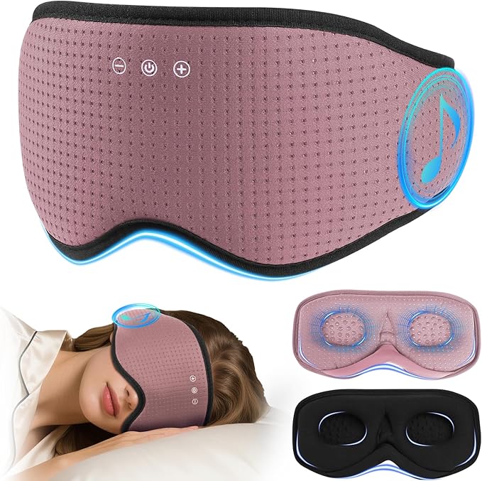 Sleep Mask with Bluetooth 5.4 Headphones, Removable 3D Eye Cups, Timing Sleeping Headphones for Side Sleepers, Wireless Music Eye Mask Speakers for Men, Women, Tech Gifts, Pink