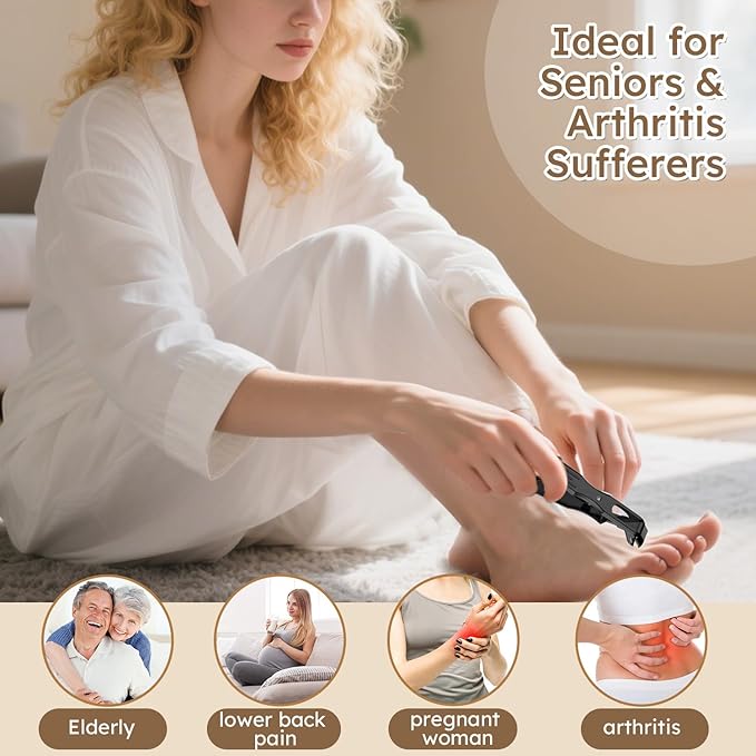 - Angled Head Toe Nail Clippers with Catcher – Designed with an angled head, these toenail clippers for seniors provide a clear view of the blade and nail, making it easier to trim accurately and safely—no more blind cutting or awkward positions. Perfect for seniors, pregnant women, or anyone with limited flexibility. These ergonomic nail clippers for men and women also feature a built-in catcher to keep clippings contained and mess-free.