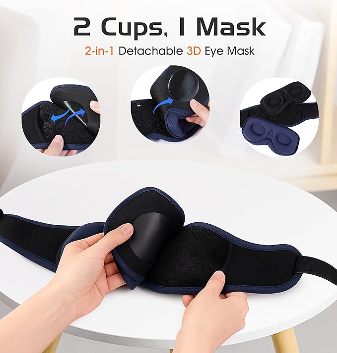 - 【Sleep Mask Bluetooth with 2 Removable Cup Enjoy Dual Experience】Sleep mask with bluetooth headphones breaks the traditional fixed pattern, realizes the unique design of removable, and comes with two kinds of cups, the bamboo cotton cup is skin-friendly and non-pilling and air fabraic cup is soft and breathable, promoting you to fall asleep faster. With the stick-on replacement design, bluetooth headphones is easy to use and you can experience a different feeling according to your preference