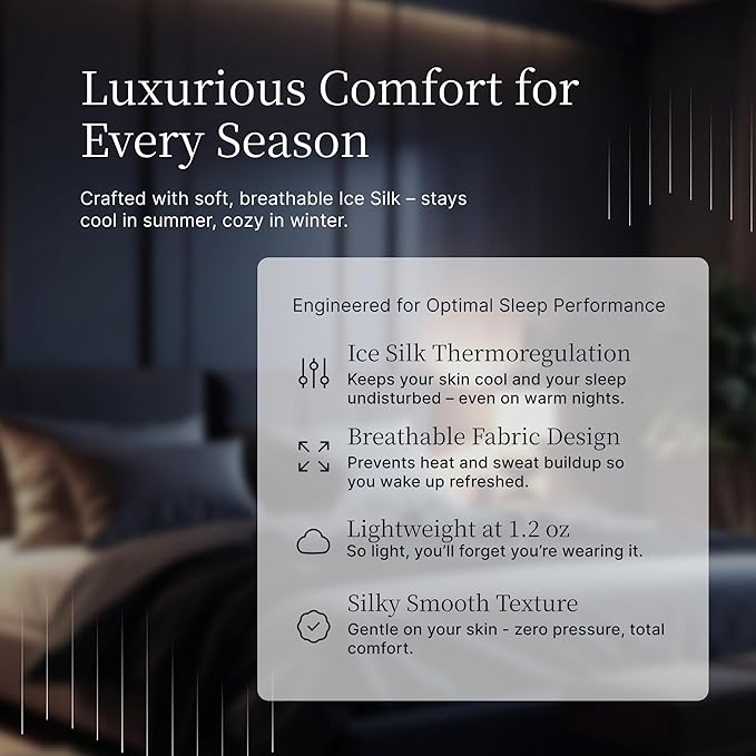 - 𝐂𝐨𝐨𝐥, 𝐒𝐢𝐥𝐤𝐲 𝐂𝐨𝐦𝐟𝐨𝐫𝐭 𝐀𝐥𝐥 𝐘𝐞𝐚𝐫 – Made with temperature-regulating ice silk, the mask feels refreshingly cool in summer and cozy in winter. Enjoy a luxurious sleep experience every night!