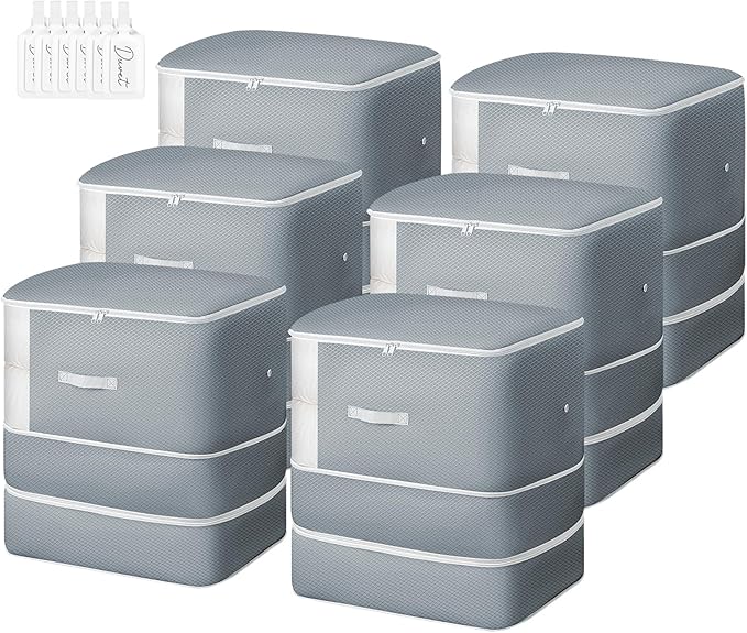 Comforter Storage Bag - Extra Large Capacity Blanket Storage Bags 3-Layer Ultra Space Saving Self Compression Organizer, Washable Compression Bags for Storage Comforter Blanket, 6-Pack, Grey