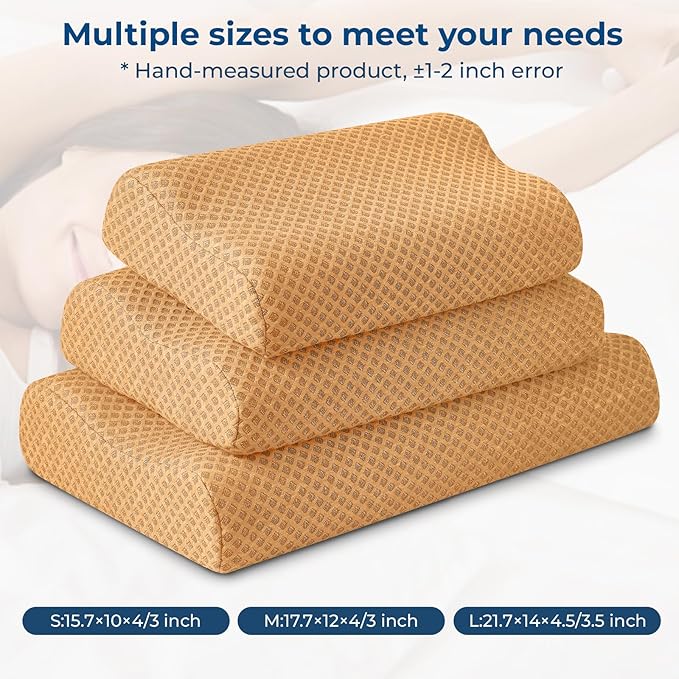 Travel Pillow Memory Foam Pillows, Ergonomic Wave Cervical Neck Pillow for Neck Pain Relief, Compressible Medium Firm Side Sleeper Pillow, Ideal for Camping, Office, Home & Bed (Orange, M)