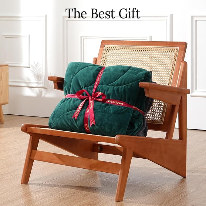 Kaisa Weighted Blanket for Adults (10 lbs, 60" x 78"), Soft Heavy Blanket Machine Washable, Queen Size Weighted Blankets with Glass Beads for Stress Relief and Sleep Promotion,Green