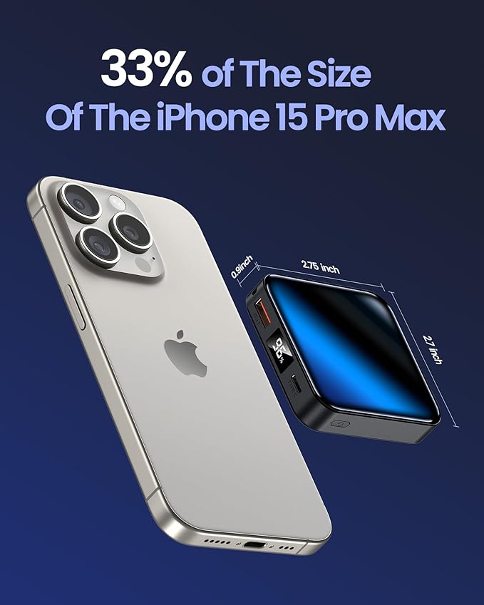 10000mAh Small Power Bank,Fast Charge Mini Portable Charger, USB C Input/Output with External Battery Pack, Smart LED Display,Suitable for iPhone, Samsung, iPad and Tablets.
