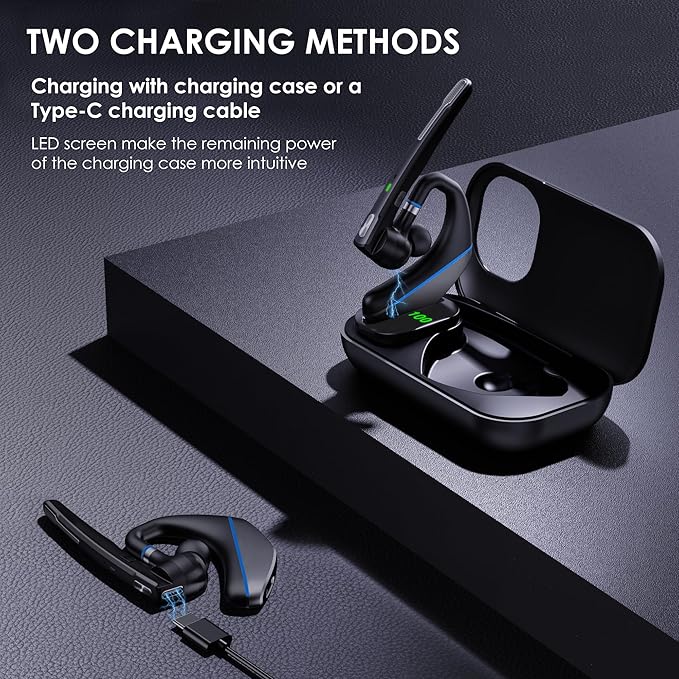 - Large battery capacity & LED Display; Wireless Headphone battery capacity is 150mAh, single charge can last for 25 hours(50% volume), and it can be fully charged in 3H. Wireless earpiece comes with a 1000mAh charging case, it’s convenient for you to travel for a long time without frequently searching for a charging port. The charging box has LED digital display to show the battery life that more intuitively reminds you the remaining battery of the charging box