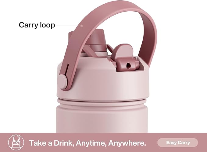 26 oz Insulated Water Bottle with 2-in-1 Straw and Spout Lid, Keep Cold 24H, Leak-Proof, Fits in Car Cup Holder, Stainless Steel Water Bottle for Sports, Travel, Gym, and School (Dried Rose)