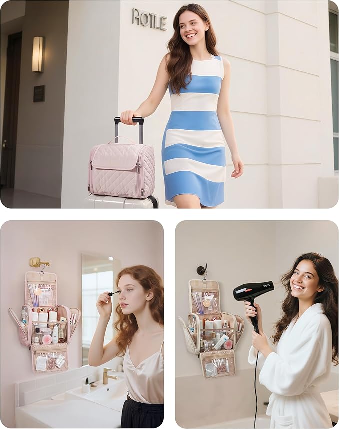 • 【Multi-functional Makeup】: This portable hanging makeup bag is a multifunctional organizer bag that combines the functionality of a makeup bag and a travel toiletry bag. It is an excellent choice for a wide range of activities, from travel, business trips, fitness routines, and beach outings to picnics and home storage. It also makes for a perfect gift for ladies, friends, and family on special occasions such as birthdays, Christmas, and Valentine's Day.