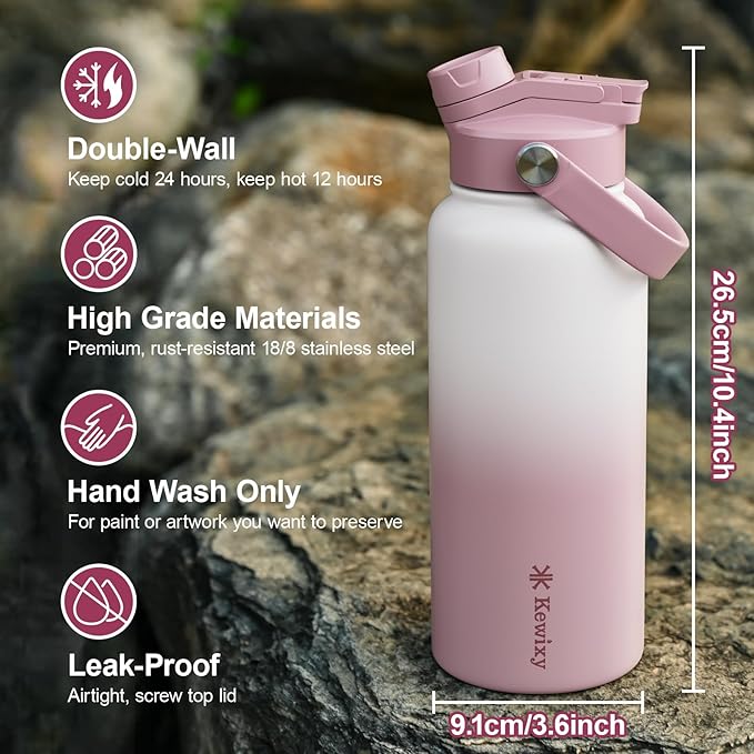 - [24-Hour Cold Lock]: Double-wall vacuum insulation combined with pro-grade 18/8 steel keeps drinks ice-cold for a full day—no sweat, no metallic taste. Enjoy crisp hydration after workouts or hot coffee on winter mornings, all in one stainless steel water bottle with straw.