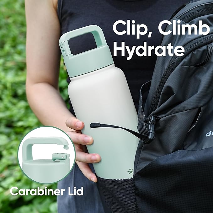 - [Clip-It Carabiner Lid]: Clip it securely to backpacks, gym bags, or belt loops—no more fumbling with loose bottles during outdoor activities. Insulated water bottle sturdy and reliable, it offers essential hands-free convenience for adventures.