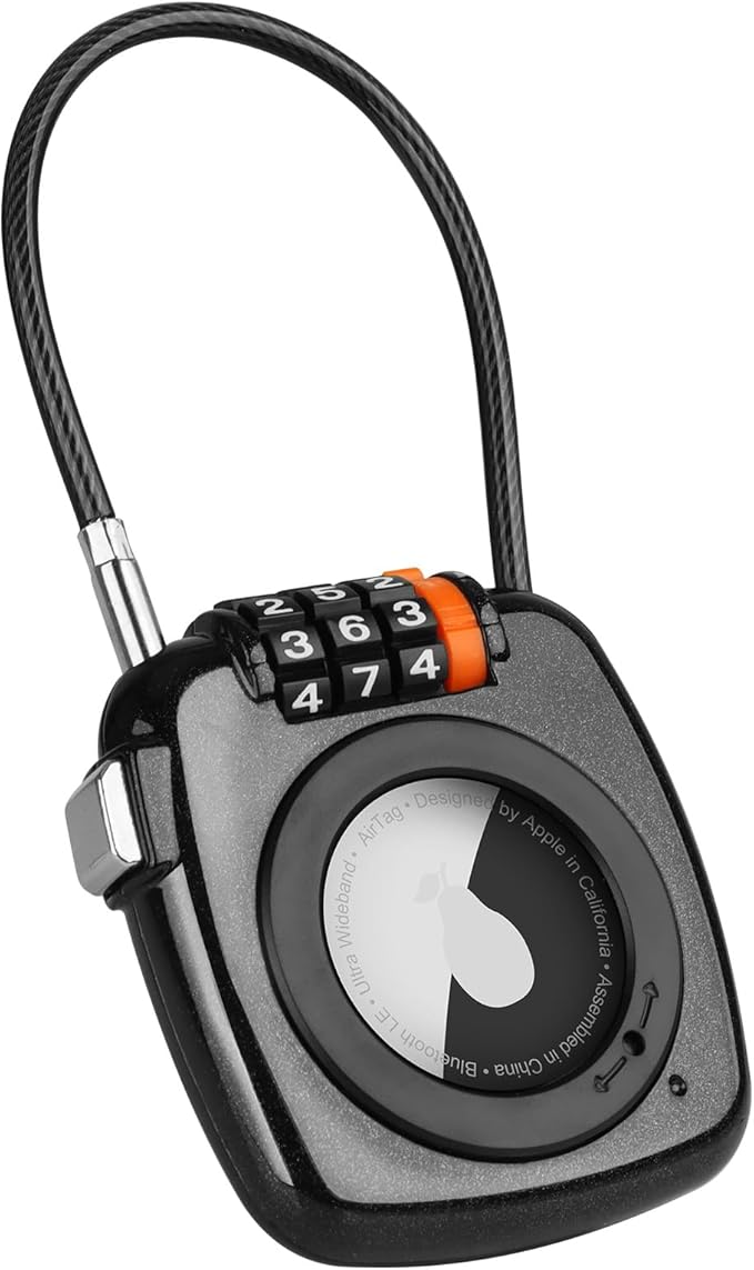 Compatible with Apple AirTag Secure Lock with Wire Cable, 3-Digit Combination Luggage Locks, Alloy Body Ultra Durable Anti-Lost Protective Case for Luggage, Bags, Suitcase, and Backpacks (BLACK)