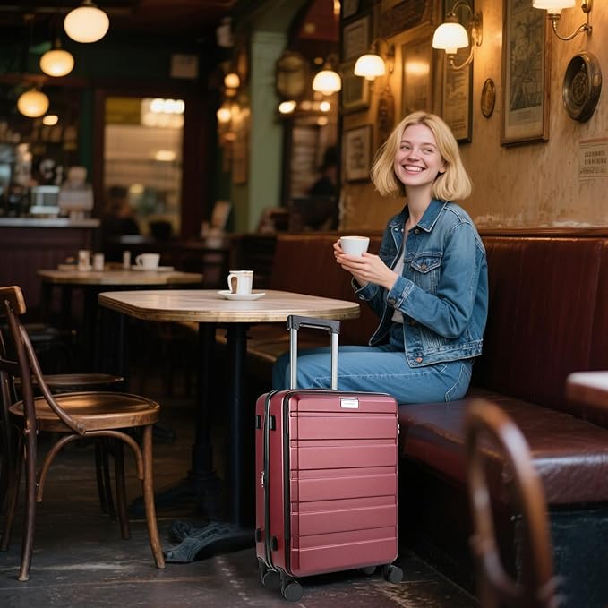 KROSER Carry On Luggage with Spinner Wheels & Built-in TSA Lock, Expandable Top Loading Hard Shell Suitcase Large Capacity Durable Rolling Luggage with USB Port, Carry-On 20-Inch, Burgundy