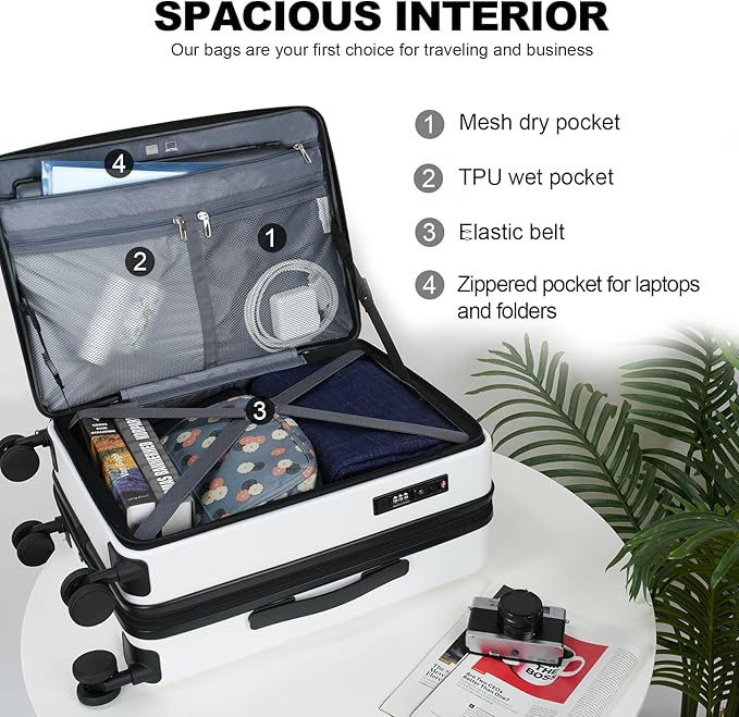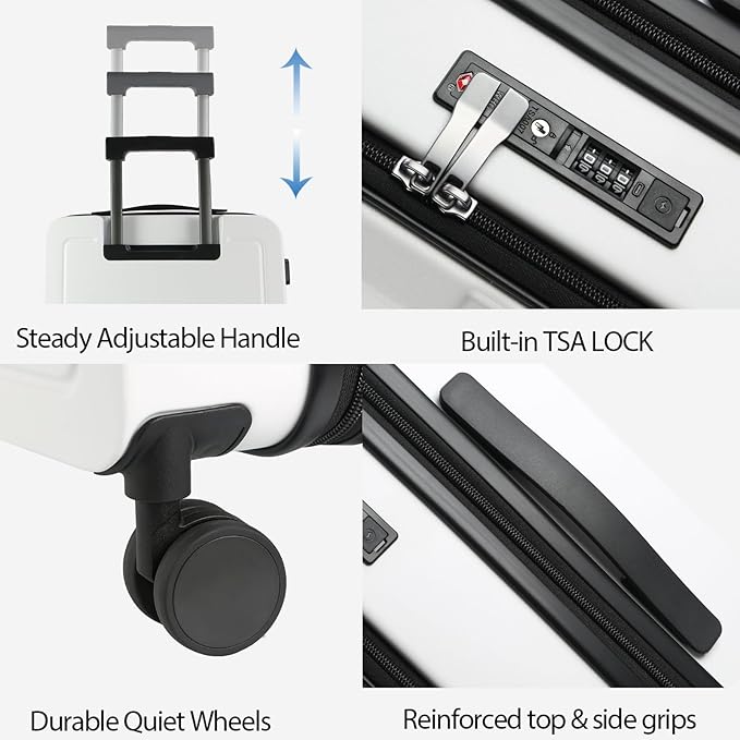 - 【High Quality Accessories】 Durable spinner wheels are composed of precision shaft center and thickened wheel skin, which are wear-resistant, quieter and have stronger bearing capacity. They are applicable to different roads such as cobblestone road and carpet road. Smooth and durable reinforced explosion-proof zipper reverse coil prevents burst zipper. TSA-approved combination lock is safe and convenient. The all aluminum telescopic handle is durable and adjustable in multiple layers.