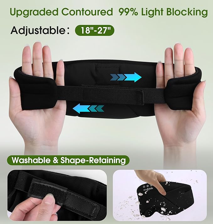 - âAdjustable & Multi-Use Design: Sleep Mask with Bluetooth Headphones perfect for travel, yoga, office naps, meditation or bedtime. The adjustable strap fits all head sizes, and its durable, machine-washable fabric stays fresh wash after wash.